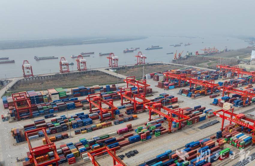 繁忙的武汉阳逻港。(湖北日报全媒记者 柯皓 摄)