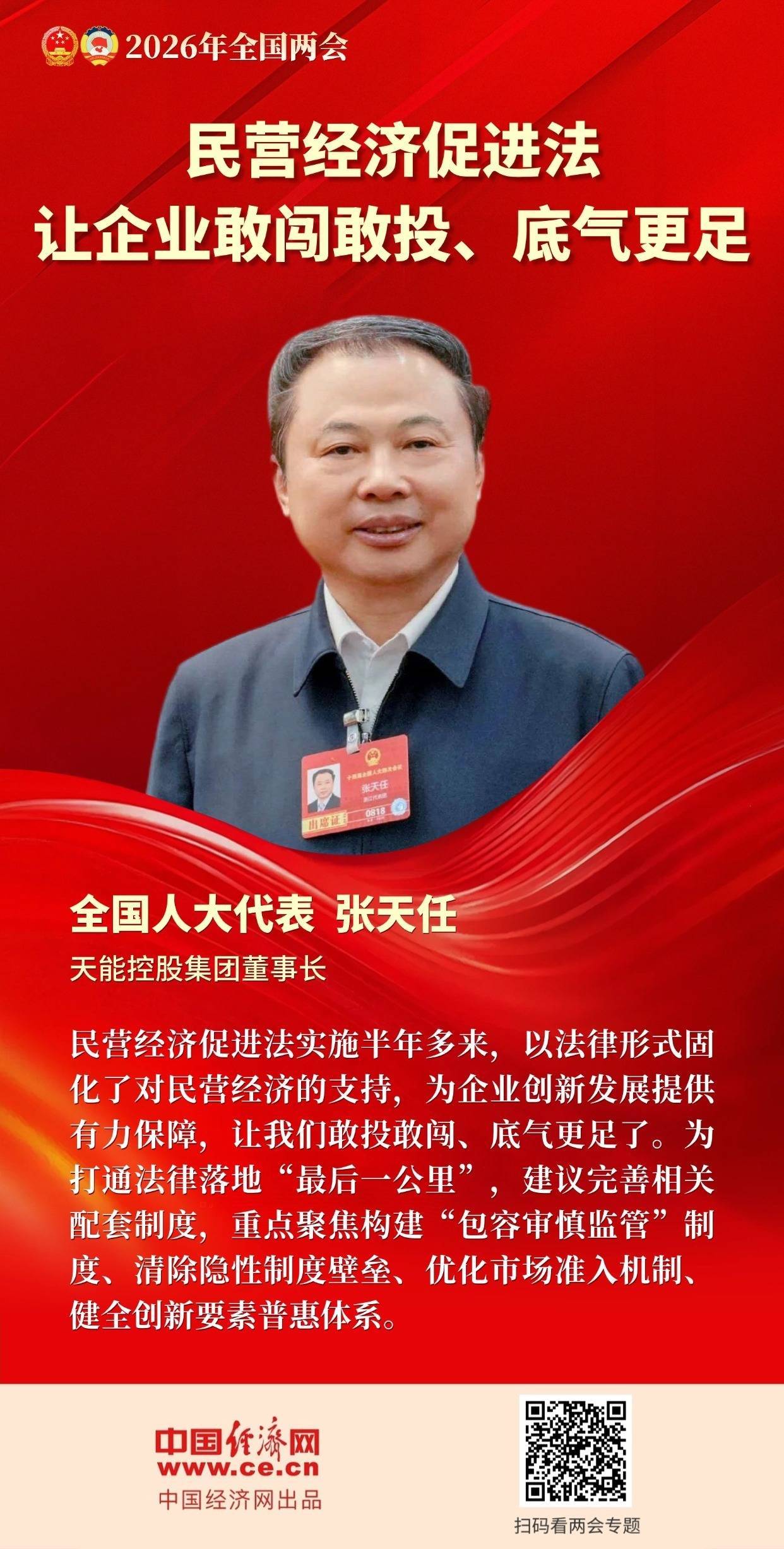 线上股票配资公司 海报丨张天任代表:民营经济促进法让企业敢闯敢投、底气更足