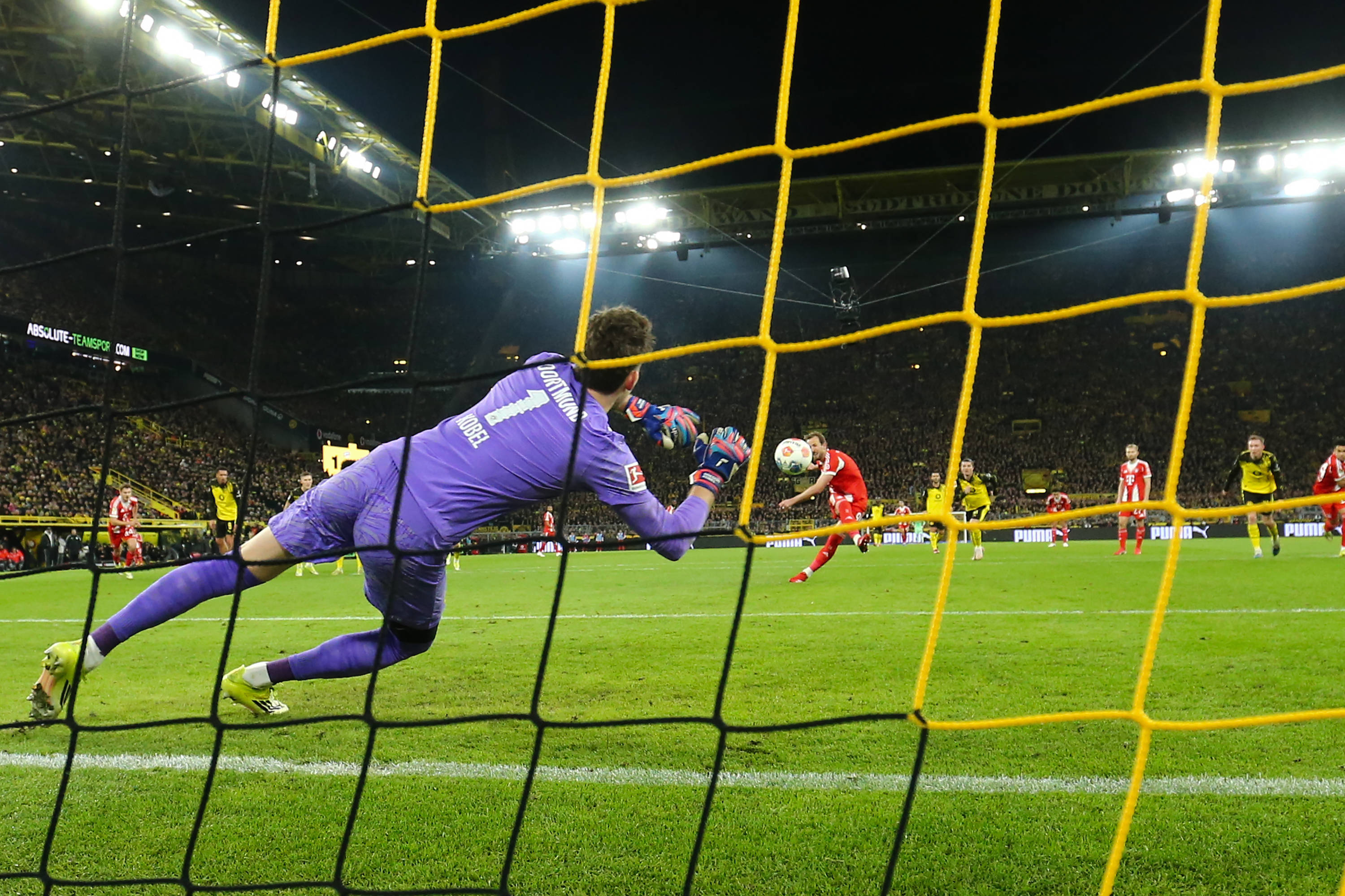 下半场拜仁加强攻势,并在第54分钟扳平比分。基米希送出挑传,格纳布里横敲,凯恩门前近距离推射得手。第70分钟,施洛特贝克在禁区内放倒斯塔尼希奇,主裁判判罚点球,凯恩主罚命中,攻入个人本赛季第30粒联赛进球,帮助拜仁反超比分。第83分钟,斯文松接萨比策传球凌空抽射破门,帮助多特将比分扳为2:2。