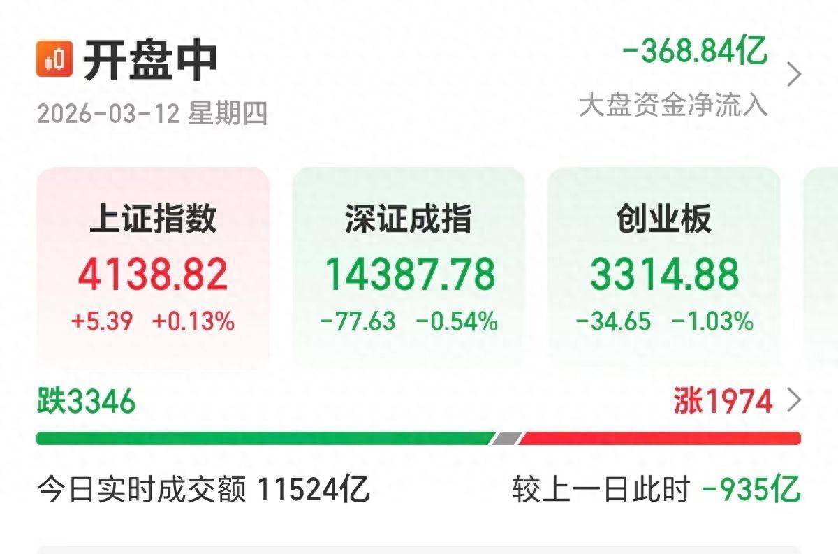 【大河财立方消息】3月12日网上炒股开户,A股指数分化,创业板指下挫跌逾1.00%,沪指涨0.13%网上炒股开户,深成指跌0.54%,科创综指跌0.54%。军工、光伏、工程机械、电网等方向跌幅居前,沪深京三市下跌个股近3400只。