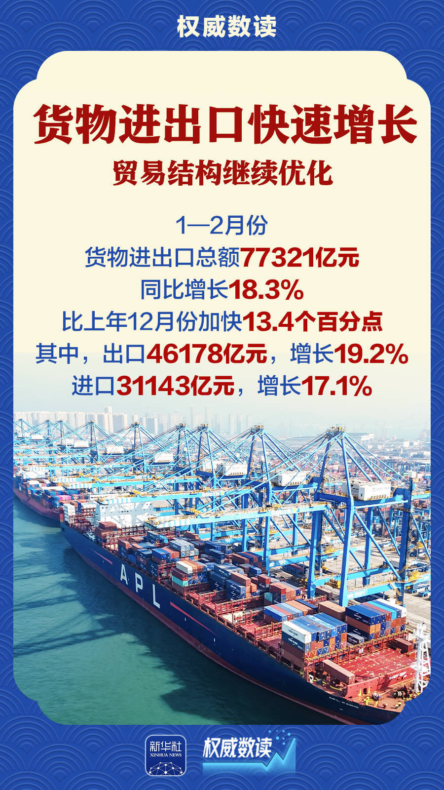 国家统计局16日发布数据显示,今年1至2月份,我国生产供给增长加快,市场需求稳中有升,物价总体稳定,新质生产力成长壮大,经济运行起步有力,实现良好开局。跟随这组海报,一起了解下。